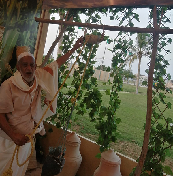 ويوجد بالركن عدة أدوات من التراث الجيزاني.