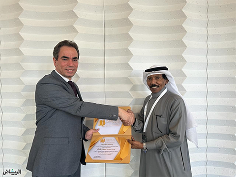 قام الكاتب أحمد المسلماني المستشار السابق للرئيس المصري والأمين العام للاتحاد بتسليم الوسام لحائز الجائزة العالمية للرواية العربية (البوكر) في مدينة الرياض .