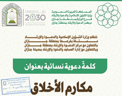 الشؤون الإسلامية بجازان تُنفّذ محاضرةً دعويةً نسائيةً بعنوان “مكارم الأخلاق” في جيزان