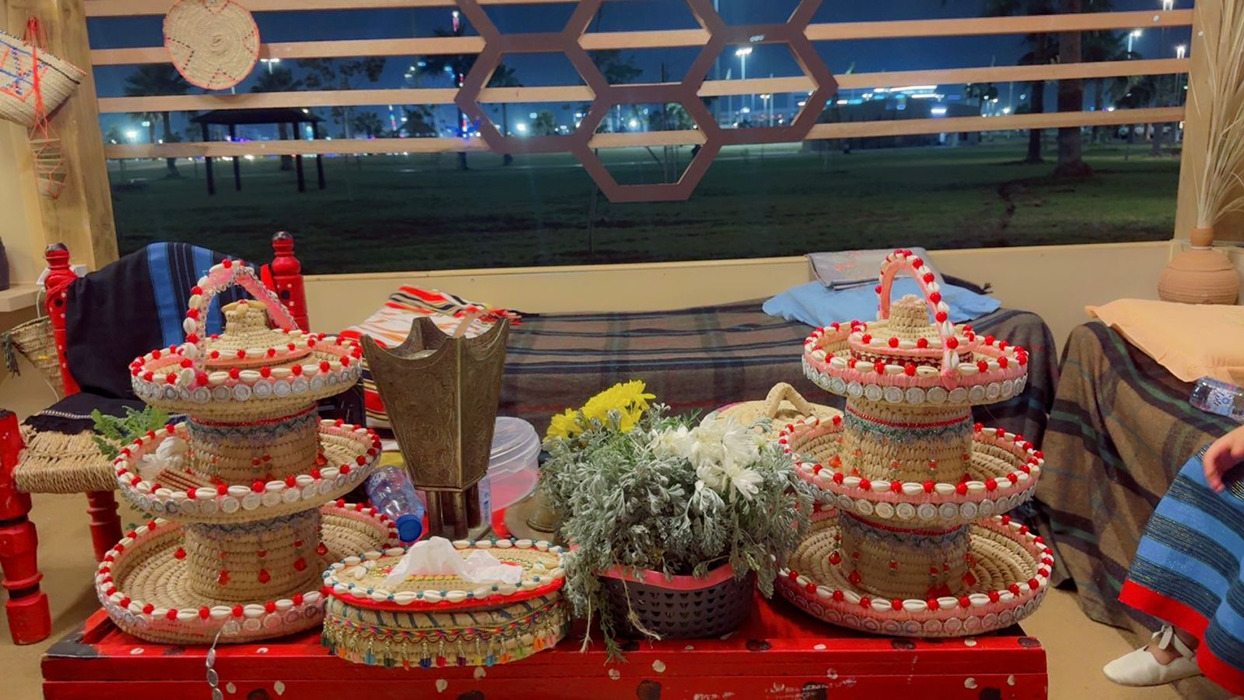 وفي سياق إبراز هذا الثراء، سجّل جناح محافظة العيدابي حضورًا لافتًا ضمن فعاليات مهرجان جازان 2026 في منطقة «هذه جازان» على الواجهة البحرية، ليغدو مقصدًا سياحيًّا وتراثيًّا استثنائيًّا. حيث تحوّلت صناعة الخوص من حرفةٍ متوارثة عبر الأجيال إلى فنٍّ متجدّد يزخر بالإبداع والمهارة الأصيلة، لتصبح كل قطعةٍ تحفةً تحكي قصة الهوية الجازانية.