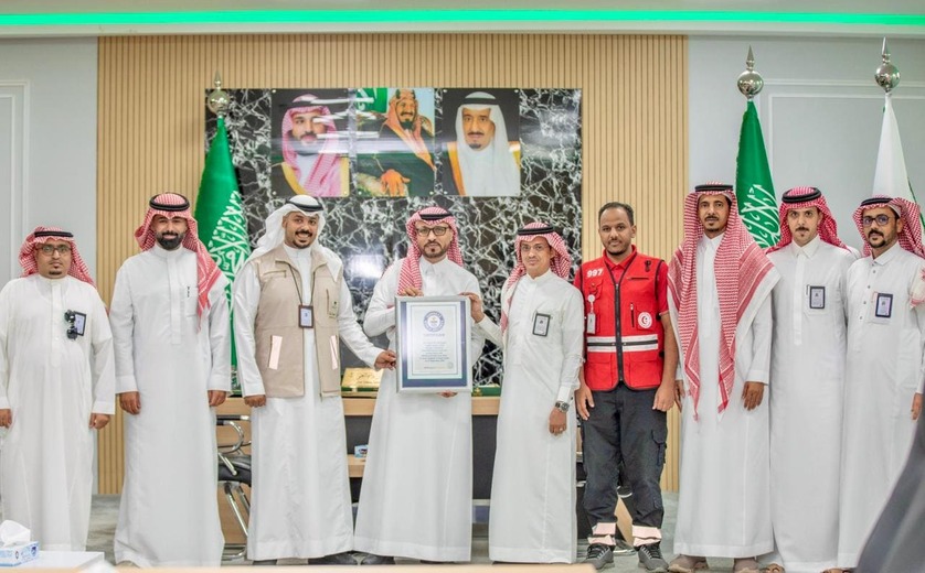وأشاد خلال اللقاء أشاد الدكتور عواجي النعمي بهذه المبادرة النوعية التي تُعد إنجازاً وطنياً وعالمياً يسجل باسم المنطقة ، موكداً أن ما تحقق يعكس تكامل الجهود بين القطاعات الصحية ، ويجسّد روح العمل الجماعي في خدمة الإنسان والمجتمع ، وذلك تماشياً مع برنامج التحول الصحي ورؤية المملكة 2030 الهادفة إلى تعزيز الوعي الصحي والإسعافي بين مختلف فئات المجتمع.