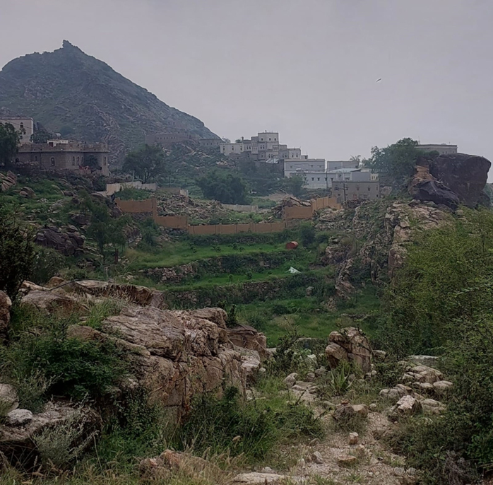 كانت طريقنا تأخذ باليسار في صعود متدرج، يغلب على اجزاء منها بعض العقبات، ومسافة الطريق لا تتجاوز خمس كيلوات، ولكنها تستهلك الكثير من الوقت لقطعها، فالطريق يمر في معظمه بمناطق خالية من السكان، ومعظمها مخصصة لرعي الغنم والأبل، وتوجد فيه قليل من التفرعات، التي تصل إلى بعض القرى الصغيرة في هذه الجهات.