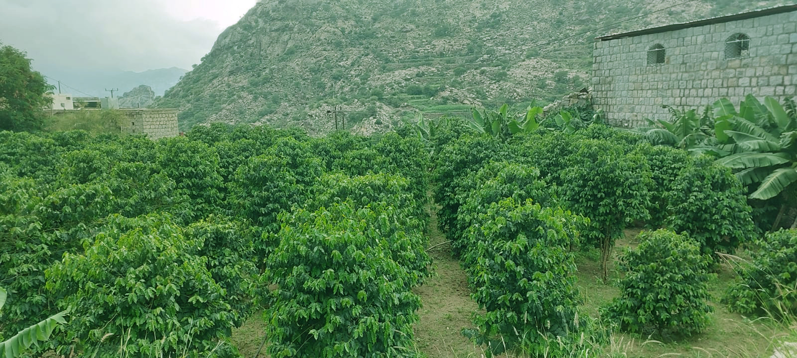 وهبطنا مشيا على الاقدام، لنتجول بين المزارع والبساتين في الأسفل، وكانت مزارع وبساتين مكتظة وعامرة بالأشجار المثمرة، وجدنا فيها أشجار البن والموز والسفرجل والفركس والعنب (البباي)، وعدد كبير من الفواكه والخضار المتنوعة، وجلنا بينها وتذوقنا شيئا من ثمارها اليانعة.