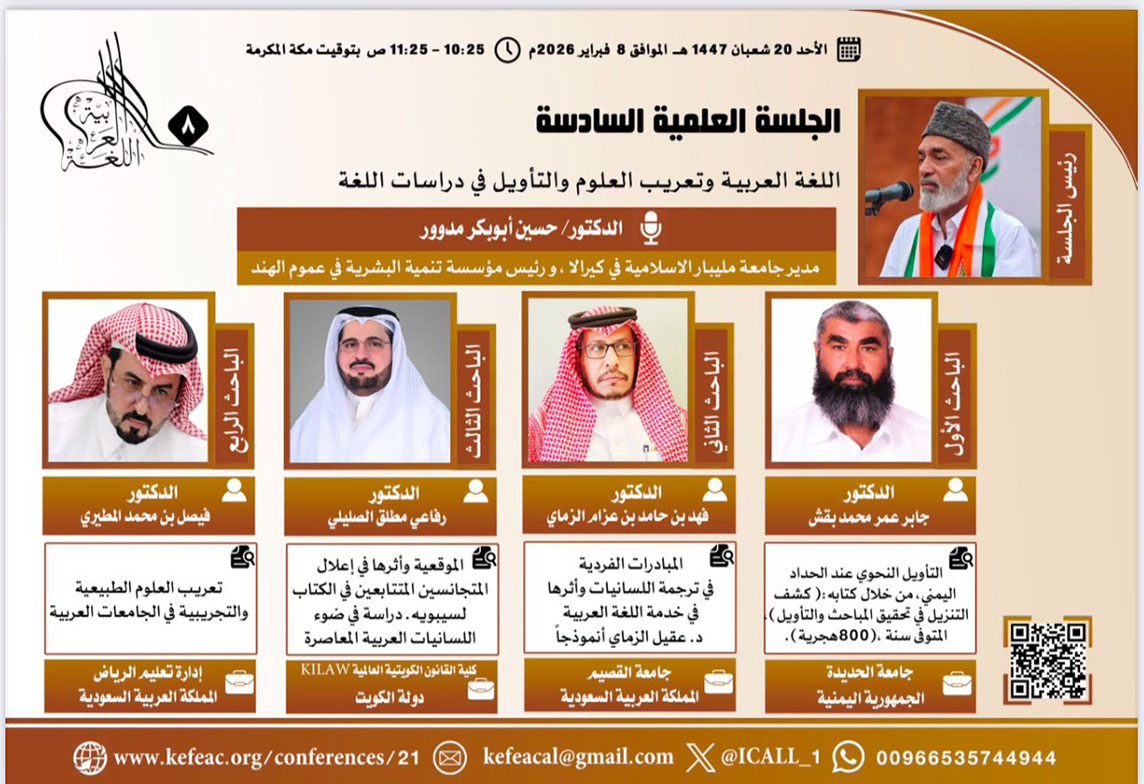 الجدير بالذكر ان الجلسات العلمية للمؤتمر سوف تناقش العديد من القضايا التي تسهم في رقي وازهار ورقي اللغة العربية وآدابها، وذلك من خلال العروض البحثية التي تعالج موضوعات متنوعة تسهم في إثراء النقاش العلمي وفتح آفاق جديدة للبحث والدراسة في اللغة العربية وآدابها «اللغة من التواصل إلى الابتكار المعرفيّ والإبداع الأدبيّ» في ظل التحولات الرقمية.