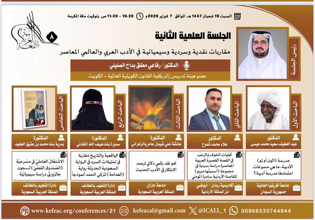 تنطلق فعاليات المؤتمر الدولي الثامن للغة العربية وآدابها: “اللغة من التواصل إلى الابتكار المعرفيّ والإبداع الأدبيّ”، في مدينة جدة، وذلك بفندق هوليداي إن كورنيش جدة، خلال الفترة 18–20 شعبان 1447هـ، تحت مظلة الهيئة العامة للمعارض والمؤتمرات.