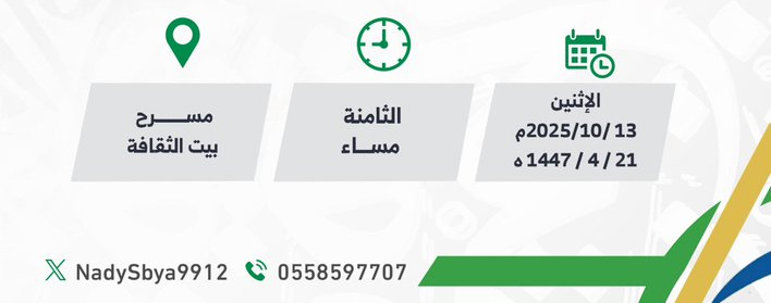 يسرّ نادي الثقافة والفنون بصبيا بالتعاون مع بيت الثقافة دعوتكم لحضور الأمسية الأدبية المثرية: (محطات سردية) حيث سوف يكون الضيف قامة أدبية متميزة