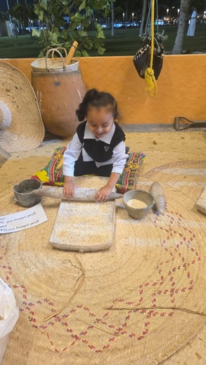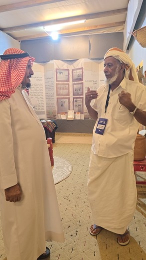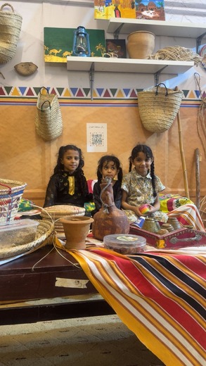 زوار من نجران يشيدون بركن الطوال وطفلات يتعلمن عادات قديمة في ركن محافظة الطوال بالمهرجان