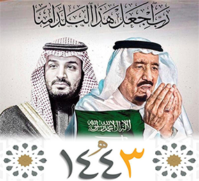 هانحن نستقبل العام الهجري الجديد (1443) جعله الله عام خير وعافية على الجميع ،عام اساسه الإيمان وهدفه إزدهار ونمو وتطور في جميع المجالات بتخطيط وإشراف قيادة حكيمة من خادم الحرمين الشريفين الملك سلمان بن عبد العزيز حفظه الله ومن خلفه ولي عهده الأمين صاحب السمو الملكي الأمير محمد بن سلمان بن عبد العزيز حفظه الله ومواطنون ومقيمون شعارهم بيت واحد يحملون أمانة الحب والولاء لمملكة الوفاء والانسانية.