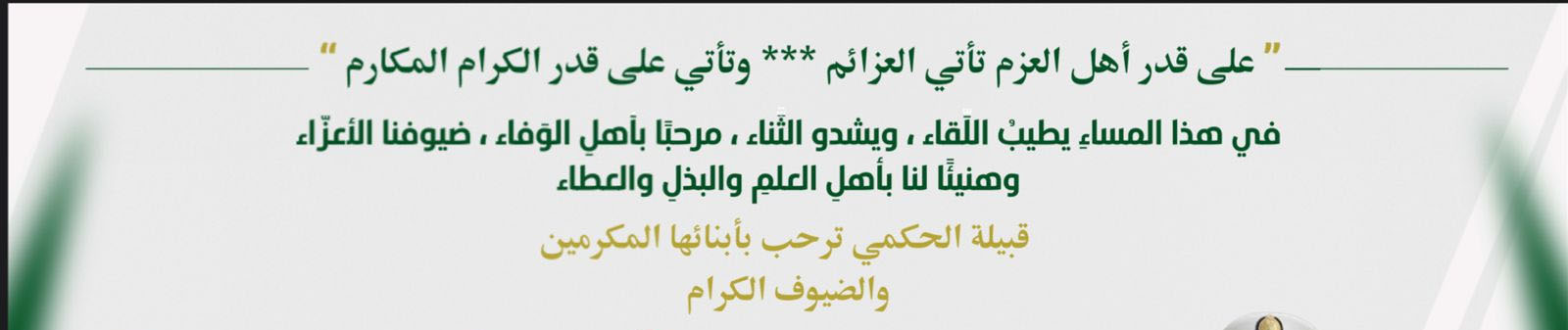 أَيُّهَا الْحُضُورُ الْكِرَامُ: إِنَّ قَبِيلَةَ الْحَكَمِيِّينَ -شَيْخًا وَعَرائِفَ وَأَفْرَادًا- بِهٰذَا الِاحْتِفَاءِ الْوَضَّاءِ قَدْ أَثْبَتُوا أَنَّ الْكَرَمَ خُلُقٌ يَسْتَقِرُّ فِي الْجَوَانِحِ، وَالْوَفَاءَ عَهْدٌ لَا يَتَغَيَّرُ مَعَ الزَّمَانِ، فَجَزَاهُمُ اللهُ عَنَّا خَيْرَ الْجَزَاءِ، وَبَارَكَ فِي خُطَاهُمْ، وَجَعَلَ مَوَدَّتَهُمْ تَمْتَدُّ جِيلًا بَعْدَ جِيلٍ، وَكَذَلِكَ نَتَقَدَّمُ بِأَجْزَلِ الشُّكْرِ لِلَّجْنَةِ الْمُنَظِّمَةِ عَلَى جُهُودِهَا النَّبِيلَةِ وَعَمَلِهَا الْمُتْقَنِ الْمُشَرِّفِ.