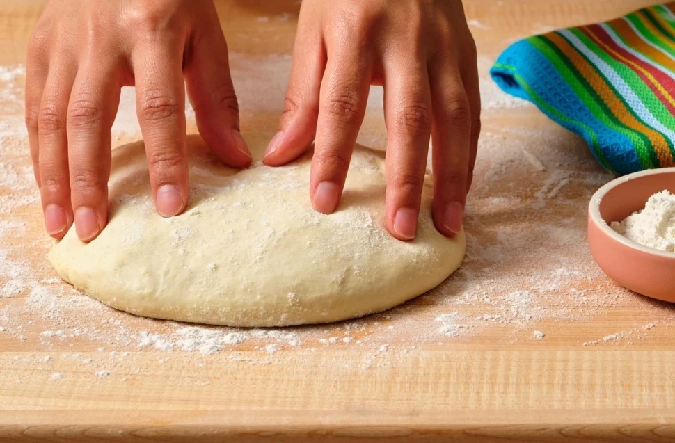 - اخلطي كل من الدقيق والملح والزيت والماء في وعاء كبير حتى تتشكل عجينة طرية، غطيها واتركيها جانباً لمدة 15 دقيقة.